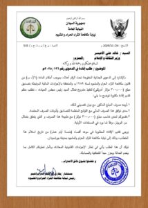 رسميين كل على حدة إلى وزير الثقافة والإعلام، خالد علي الأعيسر، ووزير المالية والتخطيط الاقتصادي، د. جبريل إبراهيم محمد، طالبت فيهما بتقديم إفادات مكتوبة تتعلق بالإجراءات القانونية والمالية المرتبطة بالتصديق وصرف المبلغ.