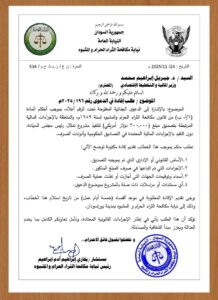 وحددت النيابة مهلة أقصاها خمسة أيام عمل من تاريخ استلام الخطابات لتقديم الإفادات المطلوبة إلى مقرها بمدينة بورتسودان، مؤكدة أن الإجراء يأتي في إطار العمل القانوني المعتاد وتعزيز مبادئ الشفافية والمساءلة وحماية المال العام.