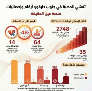 إنفوجرافيك إنفوجرافيك (14) حالة وفاة جديدة و(64) إصابة بالحصبة بمحلية خلال يومين بجنوب دارفور By Ain Elhagega On يناير 17, 2026 Share Share FacebookTwitterGoogle+ReddItWhatsAppالبريد الإلكترونيFacebook MessengerTelegram