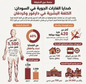 إنفوجرافيك إنفوجرافيك (420) غارة للجيش السوداني قتلت (5) آلاف مدني في دارفور وكردفان By Ain Elhagega Last updated يناير 17, 2026 Share Share FacebookTwitterGoogle+ReddItWhatsAppالبريد الإلكترونيFacebook MessengerTelegram