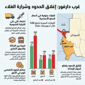 إنفوجرافيك أنفوجرافيك: غرب دارفور.. إغلاق الحدود وشرارة الغلاء أنفوجرافيك: عين الحقيقة By Ain Elhagega On مارس 2, 2026 Share أنفوجرافيك Share FacebookTwitterGoogle+ReddItWhatsAppالبريد الإلكترونيFacebook MessengerTelegram