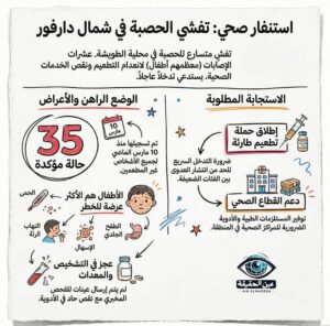 أخبار محلية إنفو جرافيك : تفشي الحصبة في شمال دارفور By Ain Elhagega Last updated أبريل 4, 2026 Share Share FacebookTwitterGoogle+ReddItWhatsAppالبريد الإلكترونيFacebook MessengerTelegram