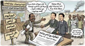إنفوجرافيك بيع أراضي سودانية لشركة صينية للتنقيب عن اليورانيوم..!! كاريكتير: عين الحقيقة By Ain Elhagega On أبريل 22, 2026 Share Share FacebookTwitterGoogle+ReddItWhatsAppالبريد الإلكترونيFacebook MessengerTelegram