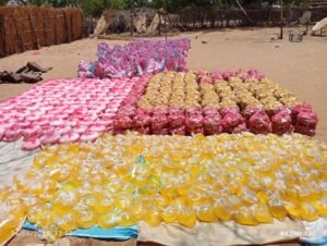 وشمل توزيع السلال الغذائية في حي الوحدة تقديم 340 سلة غذائية، احتوت على 2 ملوة من عيش الدخن، و5 رطل بصل، 2 رطل سكر،1 زجاجة زيت لكل أسرة مستفيدة علاوة على دعم طلاب الخلاوي، بعدد، 2 جوال بصل، 2 ،جركانة زيت، 1،جوال عيش دخن، مقابل كل خلوة (1) جوال بصل،(1) جركانة زيت،(8) ملوة عيش دخن، فيما تم توزيع 310 سلال غذائية في حي التضامن، تضمنت 2 ملوة من الدخن، و5 أرطال من السكر، و6 أرطال من البصل، بالإضافة إلى 1.5 زجاجة من الزيت.